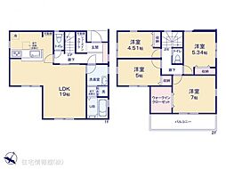 | 間取り | 4LDK 間取り内訳:リビングダイニングキッチン 18帖(1階)・洋室 7帖(2階)・洋室 6.5帖(2階)・洋室 5.3帖(2階)・洋室 4.5帖(2階) |