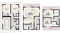 | 間取り | 2SLDK 間取り内訳:収納 8.1帖(1階)・リビングダイニングキッチン 15.6帖(2階)・洋室 7帖(3階)・洋室 7帖(3階) |