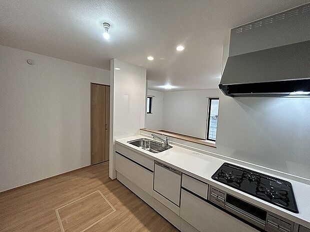 太陽光発電付きの長期優良住宅、第三者機関による住宅性能評価書付き、ZEH水準省エネ住宅。カウンターキッチンとリビング階段のある開放的なレイアウト。