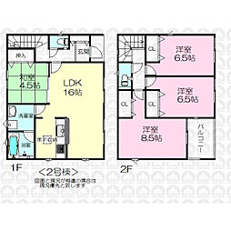 | 間取り | 4LDK 間取り内訳:リビングダイニングキッチン 16.7帖(1階)・和室 4.5畳(1階)・洋室 7.7帖(2階)・洋室 6帖(2階)x2 |