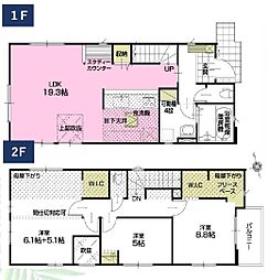 | 間取り | 3LDK 間取り内訳:リビングダイニングキッチン 19.3帖(1階)・洋室 11.2帖(2階)・洋室 8.8帖(2階)・洋室 5帖(2階) |