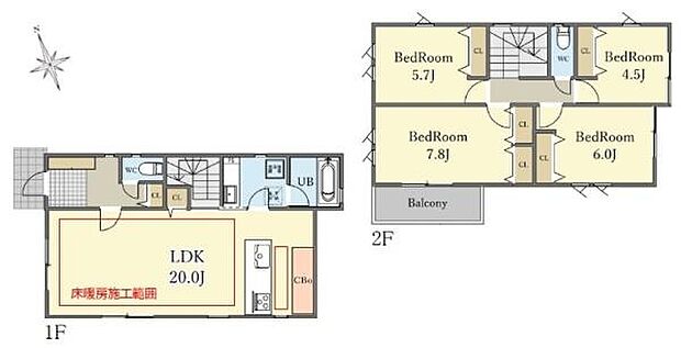 足元温かな床暖房付きのLDKは家族団欒のひと時を過ごせる空間です。全居室収納付きの使い易い4LDK。
