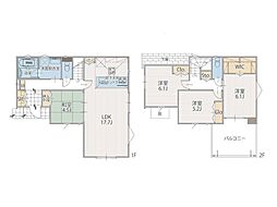 | 間取り | 4LDK 間取り内訳:リビングダイニングキッチン 20帖(1階)・洋室 5.2帖(2階)・洋室 5.2帖(2階)・洋室 5帖(2階)・洋室 7.1帖(1階) |