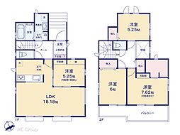 | 間取り | 3SLDK 間取り内訳:リビングダイニングキッチン 21帖(1階)・洋室 7帖(2階)・洋室 6帖(2階)・洋室 5帖(2階)・収納 4.5帖(2階) |
