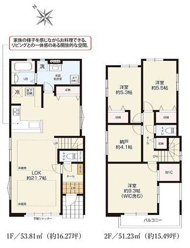 南西道路につき陽当たり通風良好 広々21帖のLDKには冬に嬉しい床暖房もご用意。納戸やWICも採用