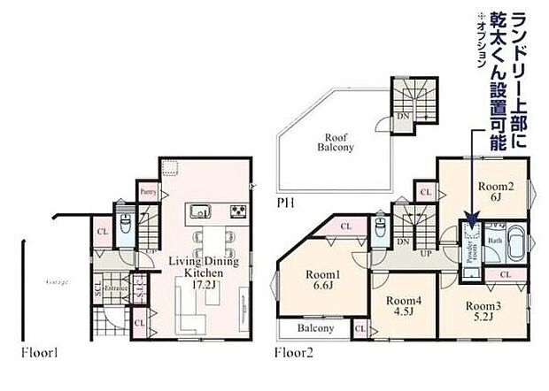 | 間取り | 4LDK 間取り内訳:リビングダイニングキッチン 17.2帖(1階)・洋室 6.6帖(2階)・洋室 4.5帖(2階)・洋室 5.2帖(2階)・洋室 6帖(2階) |