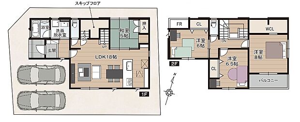 • 2号地:1階床面積:59.62m2(18.04坪)