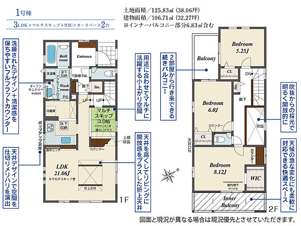 | 建物面積 | 105.78m2(約31.99坪)~106.71m2(約32.27坪) | ||