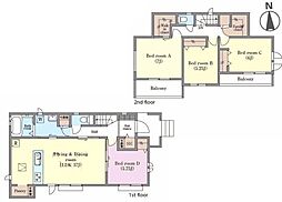 | 間取り | 4LDK 間取り内訳:リビングダイニングキッチン 17帖(1階)・洋室 5.7帖(1階)・洋室 7帖(2階)・洋室 5.2帖(2階)・洋室 6帖(2階) |