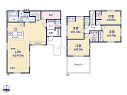 | 間取り | 4LDK 間取り内訳:リビングダイニングキッチン 20.7帖(1階)・洋室 7.5帖(2階)・洋室 5.2帖(2階)x3 |