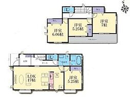 | 間取り | 4LDK 間取り内訳:和室 5.2畳(1階)・洋室 7帖(2階)・洋室 5.2帖(2階)・洋室 5.2帖(2階)・リビングダイニングキッチン 16帖(1階) |