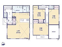 | 間取り | 4LDK 間取り内訳:リビングダイニングキッチン 22.7帖(1階)・洋室 10帖(2階)・洋室 5.7帖(2階)x2・洋室 5.2帖(2階) |