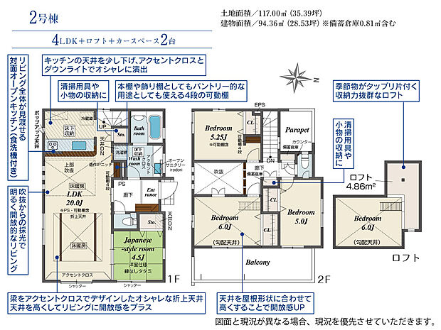 91.52m2(約27.68坪)~94.36m2(約28.54坪) |