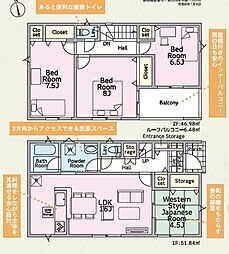 間取り内訳:リビングダイニングキッチン 16帖(1階)・和室 4.5畳(1階)・洋室 6.5帖(2階)・洋室 8帖(2階)・洋室 7.5帖(2階)