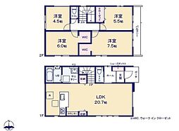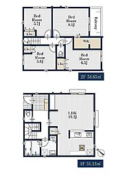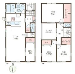 | 間取り | 4LDK 間取り内訳:リビングダイニングキッチン 17.3帖(1階)・洋室 7帖(2階)・洋室 5.3帖(2階)x2・洋室 4.5帖(2階) |
