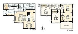 間取り内訳:洋室 11.2帖(2階)・洋室 5.2帖(2階)・洋室 5帖(2階)・リビングダイニングキッチン 17帖(1階)