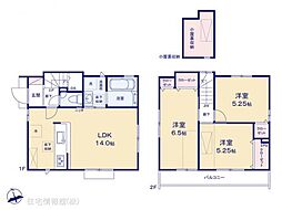 間取り内訳:リビングダイニングキッチン 14帖(1階)・洋室 3.7帖(2階)・洋室 4.7帖(2階)・洋室 6帖(2階)