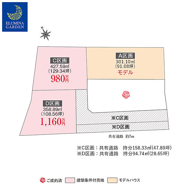 | 土地面積 | 358.89m2(108.56坪)~427.59m2(129.34坪) | ||