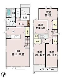 | 間取り | 4LDK 間取り内訳:リビングダイニングキッチン 19帖(1階)・洋室 5帖(2階)・洋室 7.5帖(2階)・洋室 5帖(2階)・洋室 5.2帖(2階) |