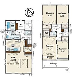 | 間取り | 4SLDK 間取り内訳:リビングダイニングキッチン 17帖(1階)・洋室 4.5帖(1階)・洋室 5.2帖(2階)・洋室 5.2帖(2階)・洋室 11.5帖(2階)・収納 2帖(2階)・収納 2帖(2階) |