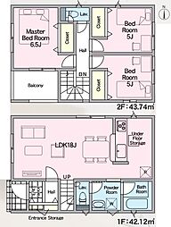 | 間取り | 2SLDK 間取り内訳:リビングダイニングキッチン 17.8帖(1階)・洋室 6帖(2階)・洋室 5.2帖(2階)・収納 5.9帖(2階)・収納 5.1帖(2階) |