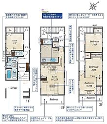 - 「建築条件付き土地」の「建物プラン例」は、土地購入者の設計プランの一例であり、プランの採用可否は任意です。