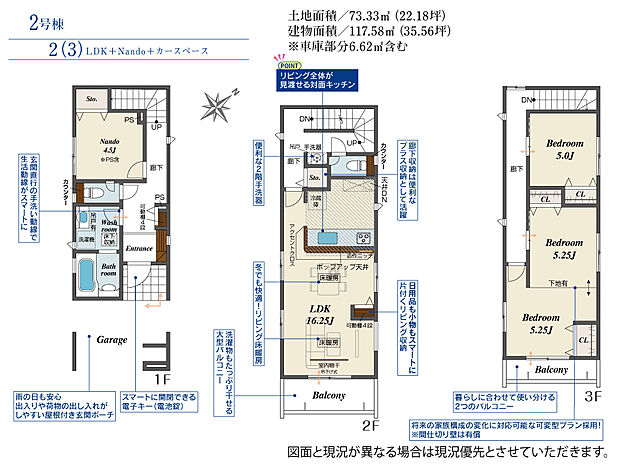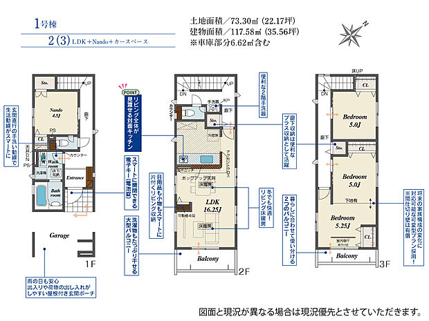 土地面積 73.30m2(約22.17坪)~73.58m2(約22.25坪)