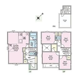 | 間取り | 4LDK 間取り内訳:リビングダイニングキッチン 18帖(1階)・洋室 7.3帖(2階)・洋室 6.5帖(2階)・洋室 4.5帖(2階)x2 |