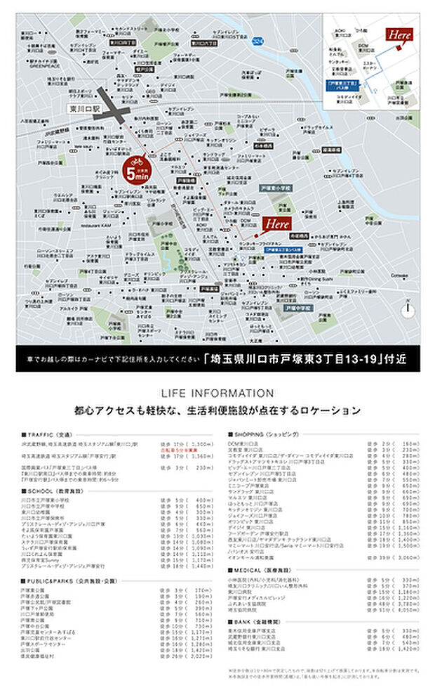 ◆小中学校徒歩10分圏内 ◆「東川口」駅まで自転車5分※実測 ◆バス停徒歩3分。暮らしに“ちょうどいい”立地 ◆ガス衣類乾燥機【乾太くん】標準設置 ◆スーパー、公園、病院など多彩な生活施設が徒歩5分圏内に点在 ◆歩ける距離に保育園・幼稚園が徒歩圏に多数 ◆最大60年保証【ロングサポート60】対応 ・カーナビご利用の方は 「川口市戸塚東3丁目13-19(付近)(付近)」とご入力ください。 ・資料請求・来場予約・その他 のお問い合わせは 【0120-921-513】 までお気軽にご連絡ください♪