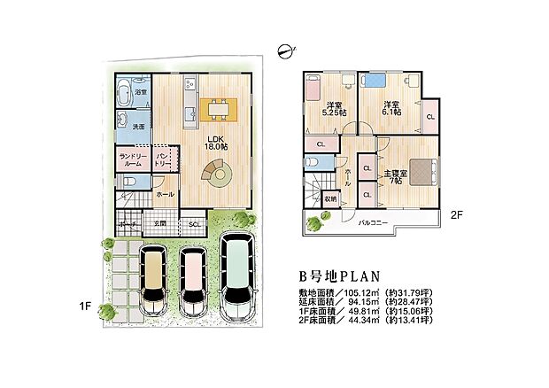 | 土地面積 | 105.12m2~105.19m2 | ||