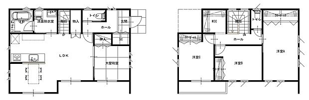 間取り 4LDK 建物階 木造JAS規格桧構造材瓦葺2階建