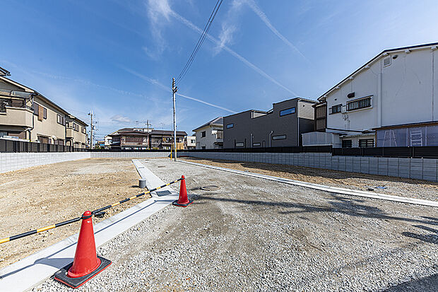 青空が綺麗な、陽当たり良好の現地。道路も新しく整備されるので、街並みの完成が楽しみですね。