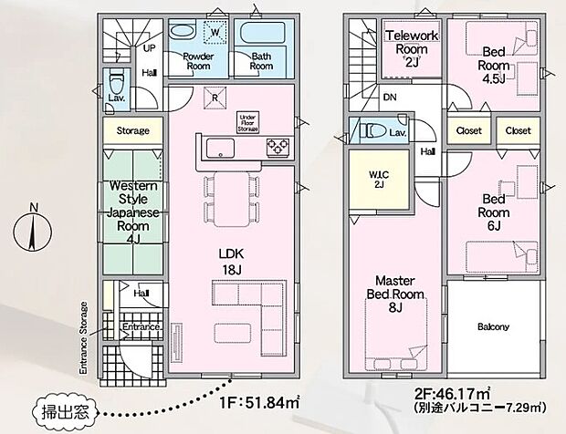 間取り 4LDK+テレワークルーム 建物階 木造2階建