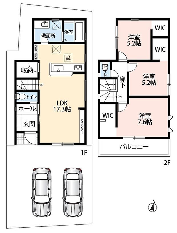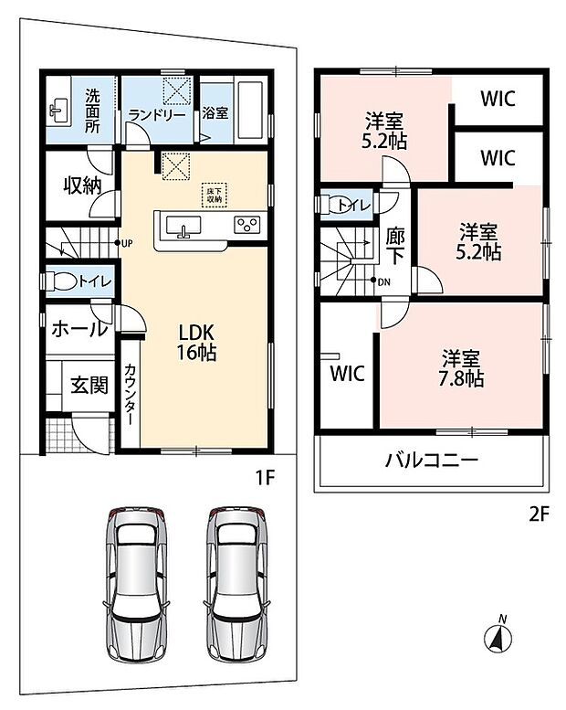 • 「建築条件付き土地」の「建物プラン例」は、土地購入者の設計プランの一例であり、プランの採用可否は任意です。