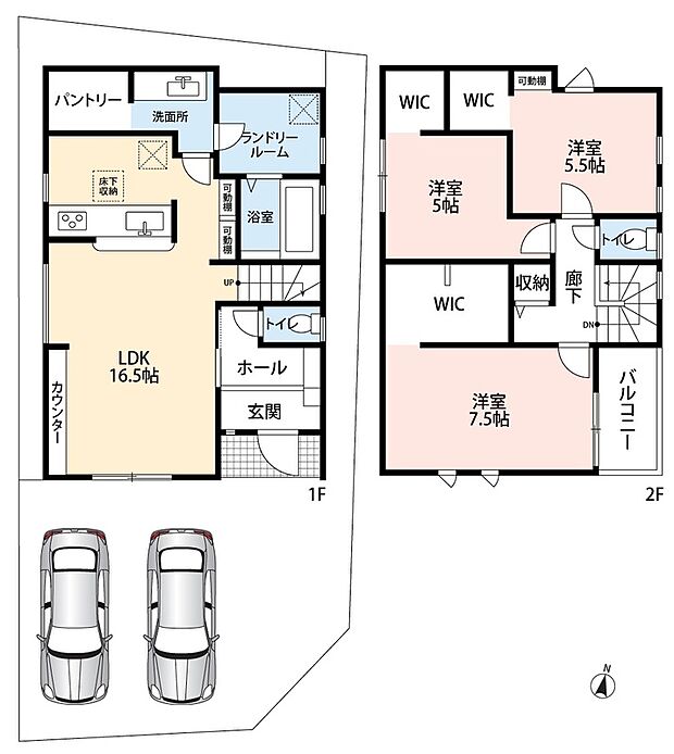 • 「建築条件付き土地」の「建物プラン例」は、土地購入者の設計プランの一例であり、プランの採用可否は任意です。