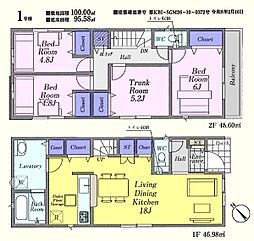 • (1号棟)、3LDK+S、土地面積100.14m2、建物面積97.2m2