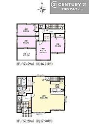 | 間取り | 3SLDK 間取り内訳:リビングダイニングキッチン 25.7帖(1階)・洋室 7.5帖(2階)・洋室 5.6帖(2階)・洋室 5.3帖(2階)・収納 2.2帖(2階) |