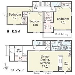 | 間取り | 4LDK 間取り内訳:リビングダイニングキッチン 16.2帖(1階)・洋室 5.7帖(1階)・洋室 5.2帖(2階)・洋室 6.7帖(2階)・洋室 6.2帖(2階) |