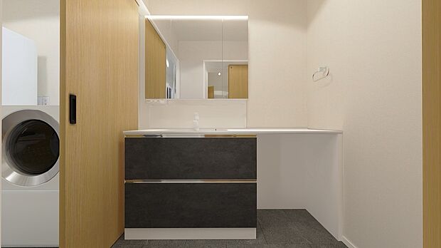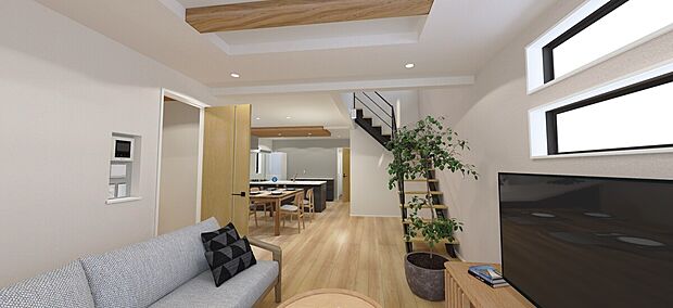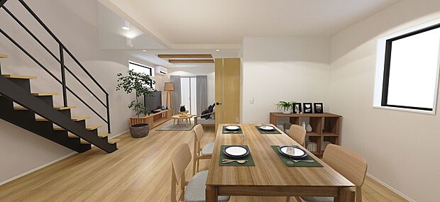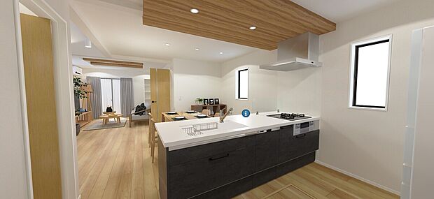 土地37坪整形地の4LDK 車2台駐車可能 ●吹抜けのあるLDK22帖 ●乾太くんデラックスタイプ搭載 ●パントリー、食洗機付きキッチン ●SIC、WICで収納充実