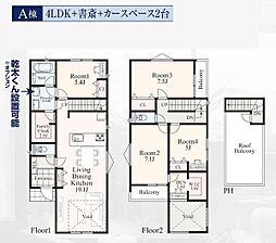 | 間取り | 4LDK 間取り内訳:リビングダイニングキッチン 17帖(1階)・洋室 7帖(2階)・洋室 5.2帖(2階)・洋室 4.5帖(2階)・洋室 4.5帖(2階) |