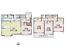 | 間取り | 4LDK 間取り内訳:リビングダイニングキッチン 15帖(1階)・洋室 5.2帖(1階)・洋室 7.5帖(2階)・洋室 6帖(2階)x2 |