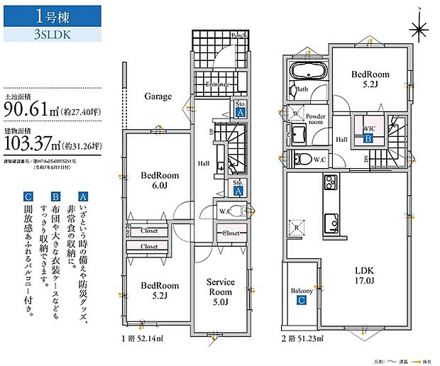 | 間取り | 3SLDK 間取り内訳:リビングダイニングキッチン 17帖・洋室 6帖・洋室 5.2帖・洋室 5.2帖・収納 5帖 |