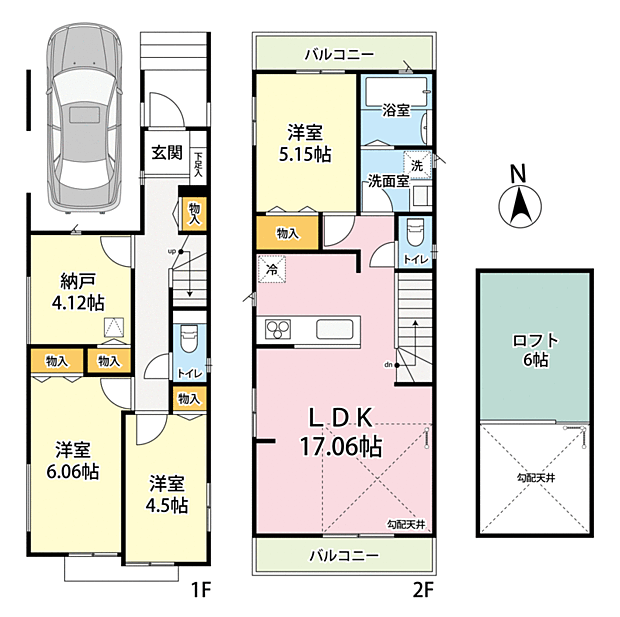 4部屋 17帖LDK・ロフト付き ZEH水準の省エネ新築戸建 落ち着きのある住環境で快適住まい 耐震等級3、地震に強い家 床暖房、食洗機標準装備