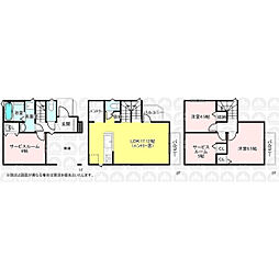 | 間取り | 2SLDK 間取り内訳:リビングダイニングキッチン 17.3帖(2階)・洋室 6帖(3階)・洋室 4.5帖(3階)・収納 4.3帖(3階)・収納 5.2帖(1階) |