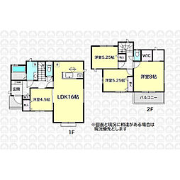 | 間取り | 4LDK 間取り内訳:リビングダイニングキッチン 16帖(1階)・洋室 4.5帖(1階)・洋室 8帖(2階)・洋室 5.2帖(2階)x2 |