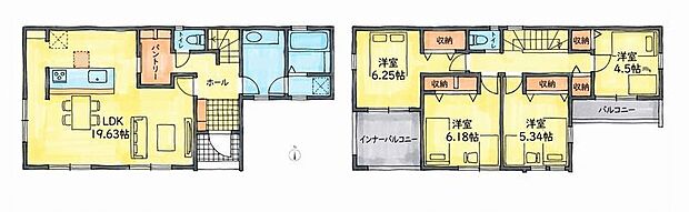 | 間取り | 4LDK 間取り内訳:リビングダイニングキッチン 19.6帖(1階) |