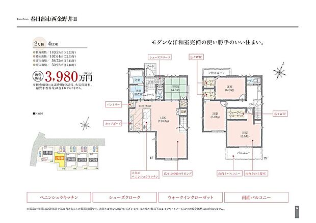 | 価格 | 3,980~4,380万円 月々のお支払い目安