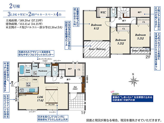 建物面積 106.81m2~116.54m2