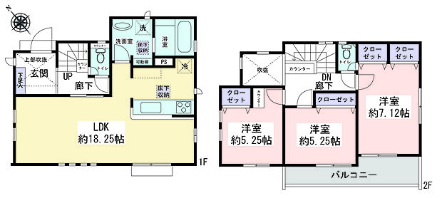 | 間取り | 3LDK 間取り内訳:リビングダイニングキッチン 18.2帖(1階) |