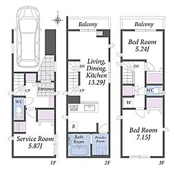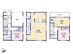 | 間取り | 2SLDK 間取り内訳:収納 4.5帖(1階)・リビングダイニングキッチン 17.6帖(2階)・洋室 7帖(3階)・洋室 7帖(3階) |